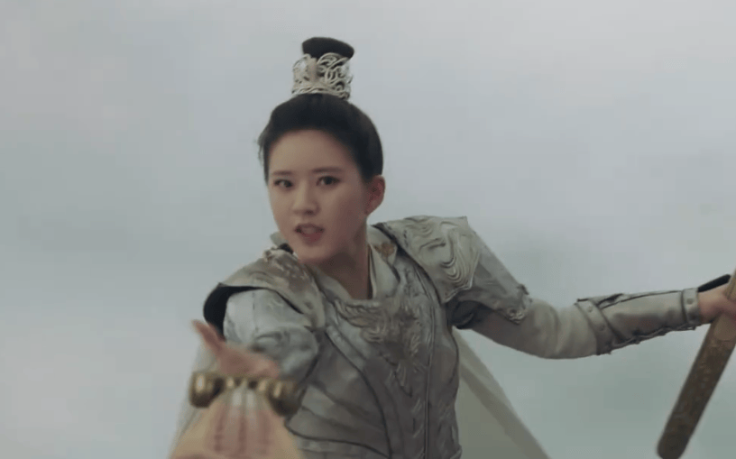这段戏份中,她身披战甲,如同发射大炮弹一般直指天空,整个画面看得人十分无语。